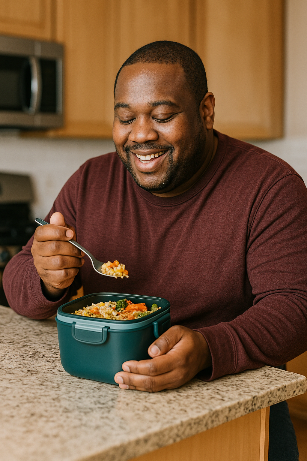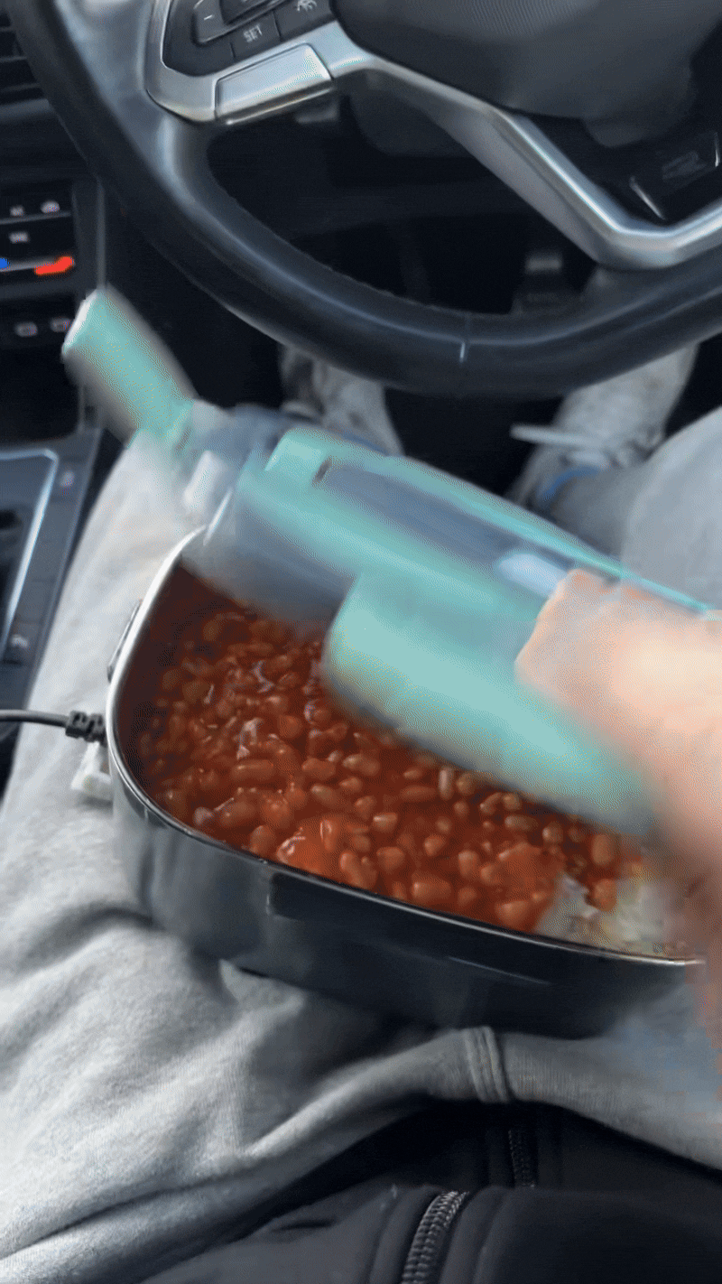 Anything pre-cooked — pasta, rice, meat, veggies, or leftovers. Just avoid raw food or frozen meals that need long cooking times.